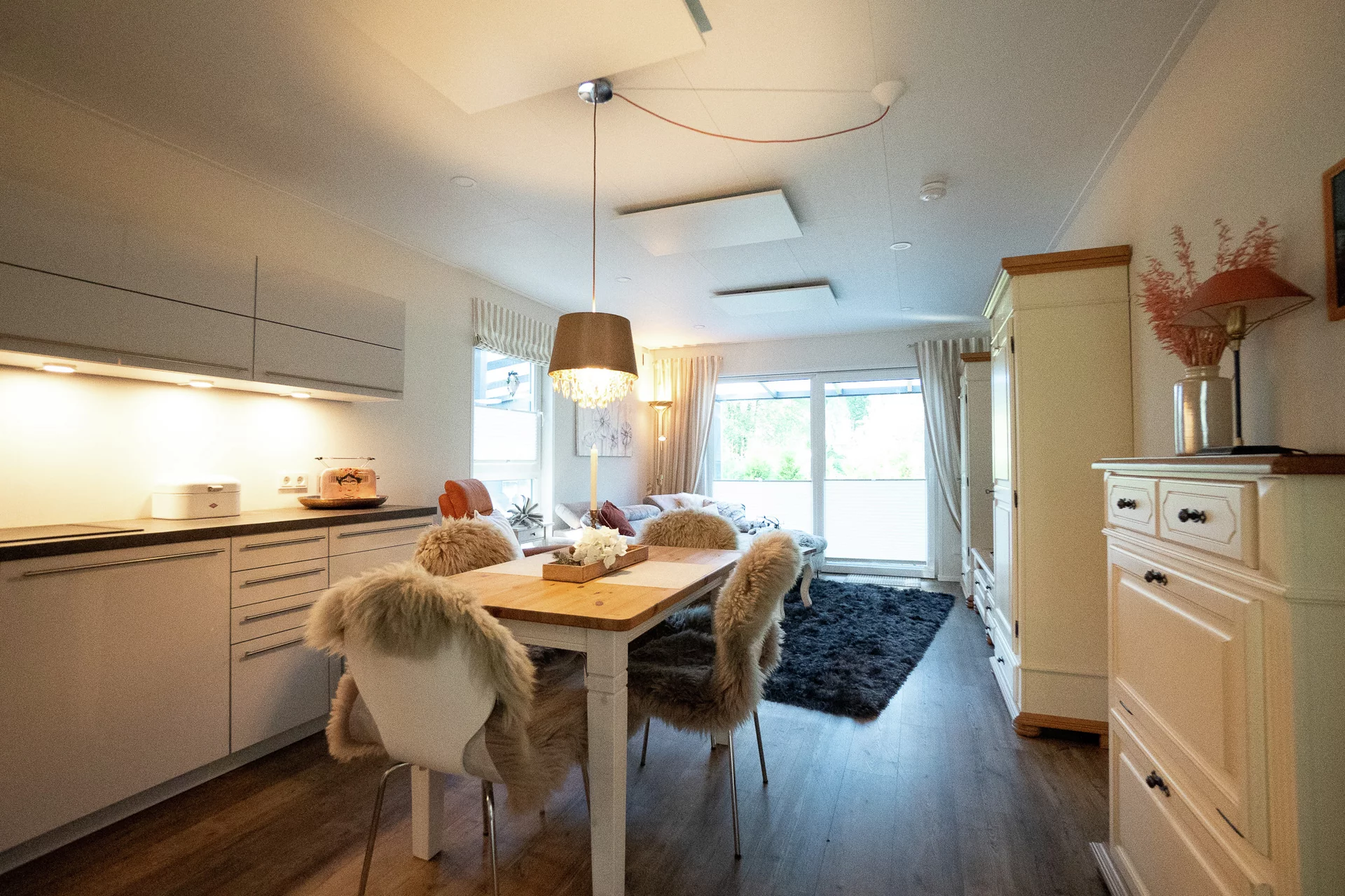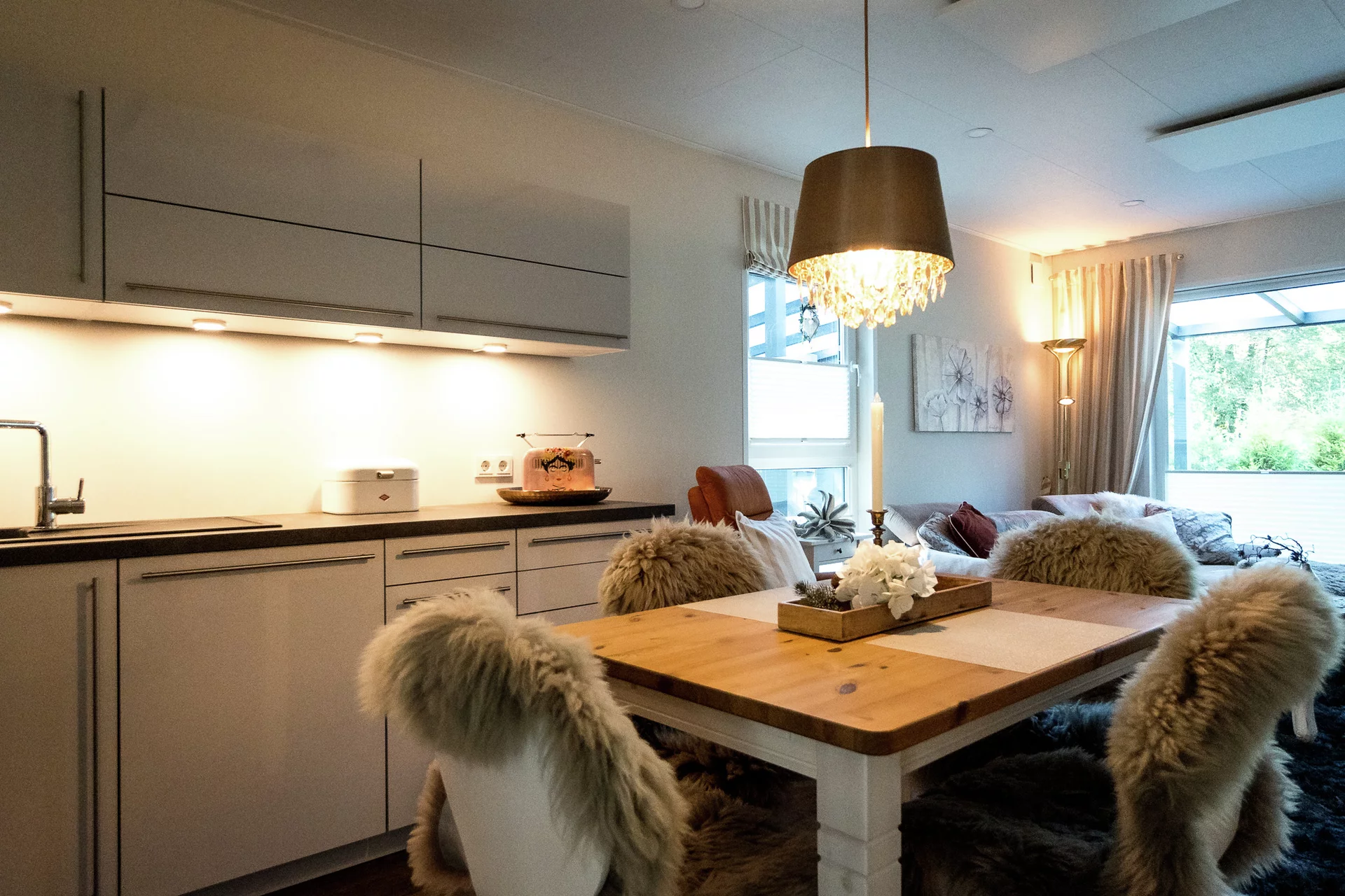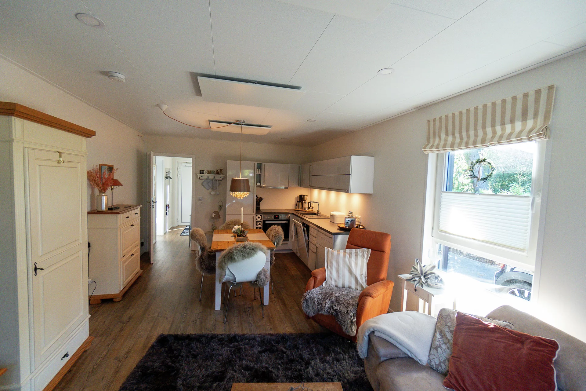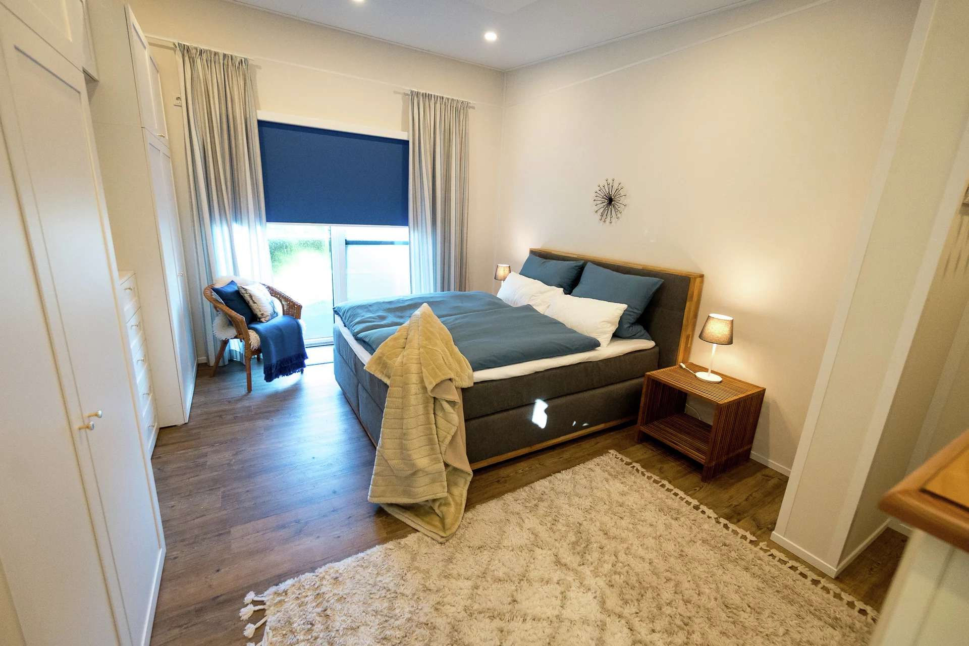 Ob großzügiger Wohnbereich, voll ausgestattete Küche oder das komfortable Schlafzimmer mit elektrischer Verdunkelung – in allen Räumen erwartet dich ein harmonisches Ambiente zum Wohlfühlen. Für angenehme Temperaturen sorgen moderne Klimaanlagen im Wohnzimmer und im Schlafzimmer.