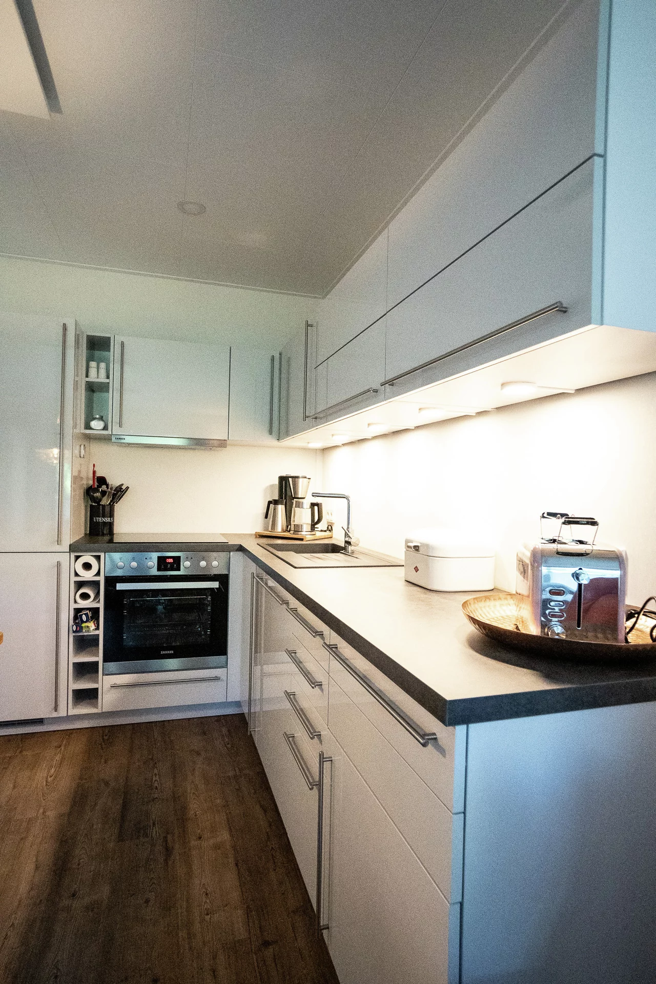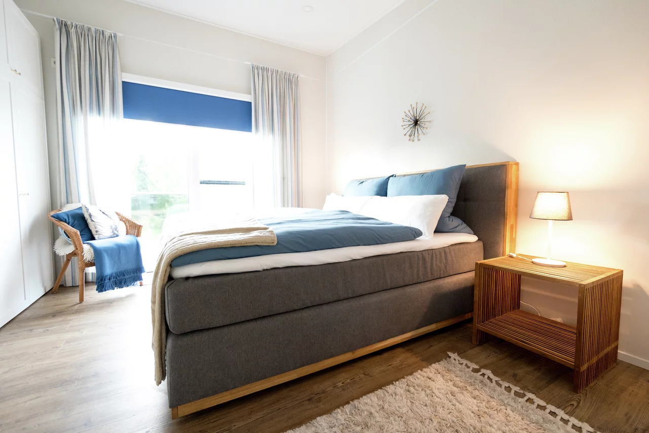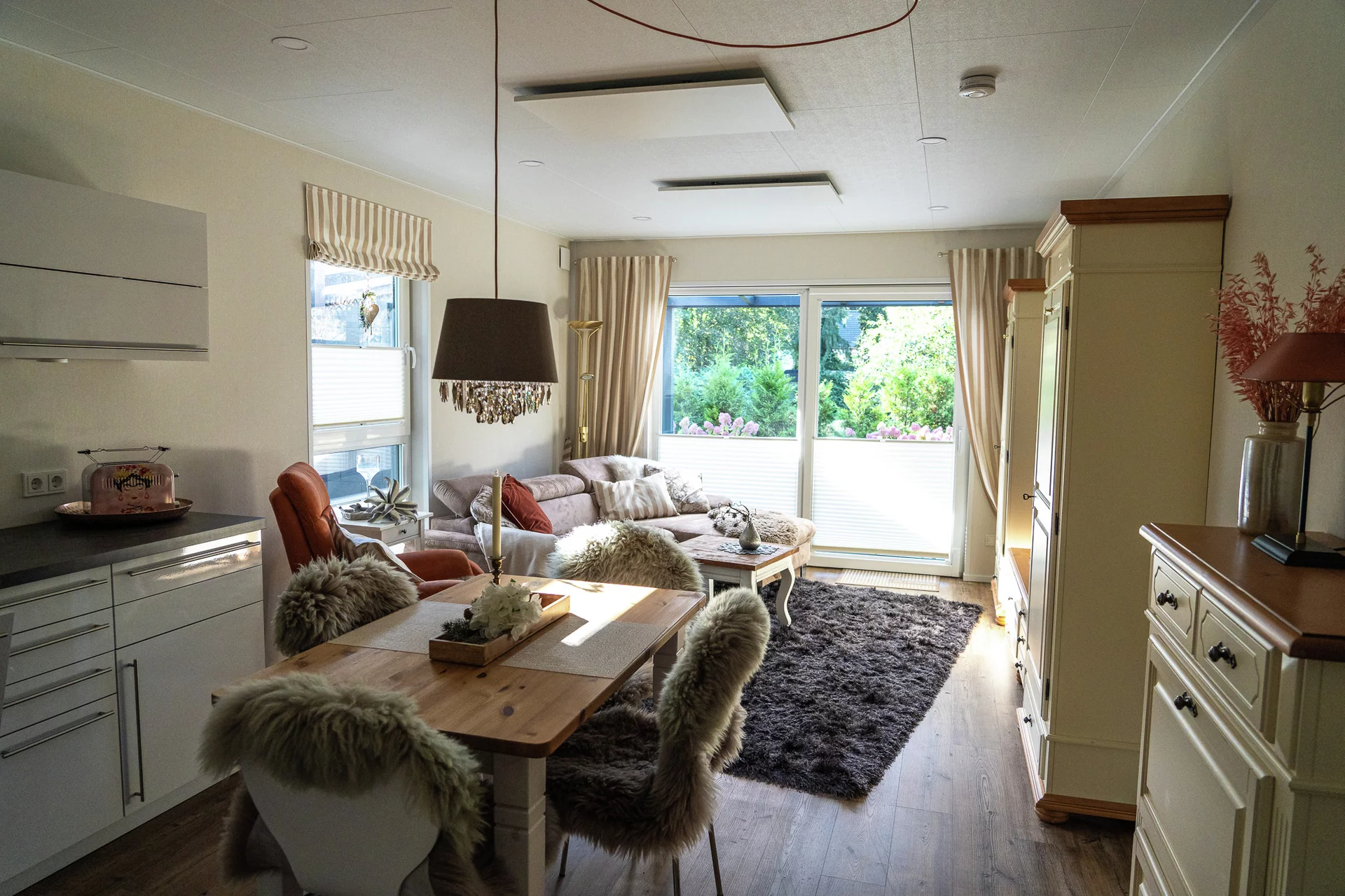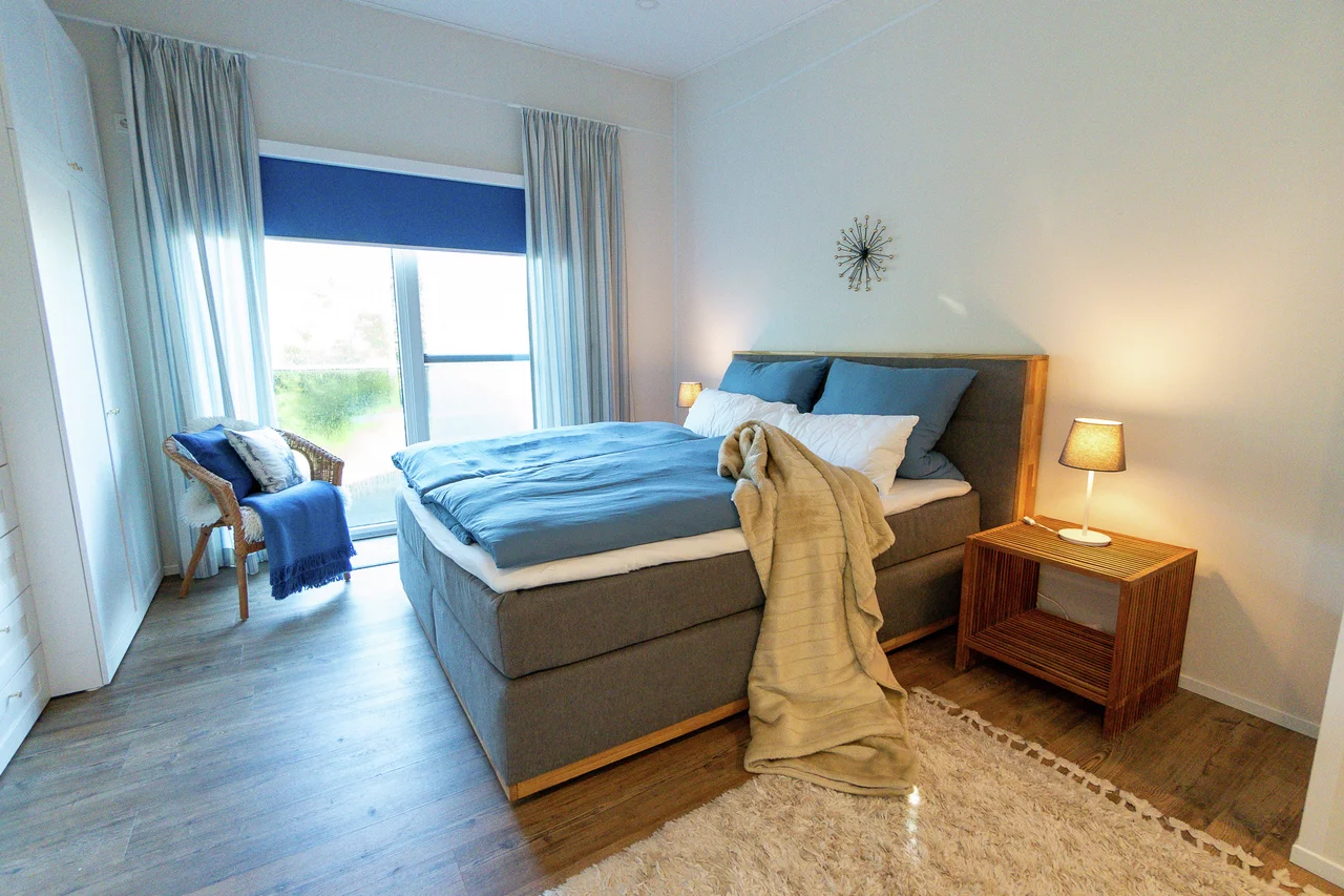 Ob großzügiger Wohnbereich, voll ausgestattete Küche oder das komfortable Schlafzimmer mit elektrischer Verdunkelung – in allen Räumen erwartet dich ein harmonisches Ambiente zum Wohlfühlen. Für angenehme Temperaturen sorgen moderne Klimaanlagen im Wohnzimmer und im Schlafzimmer.