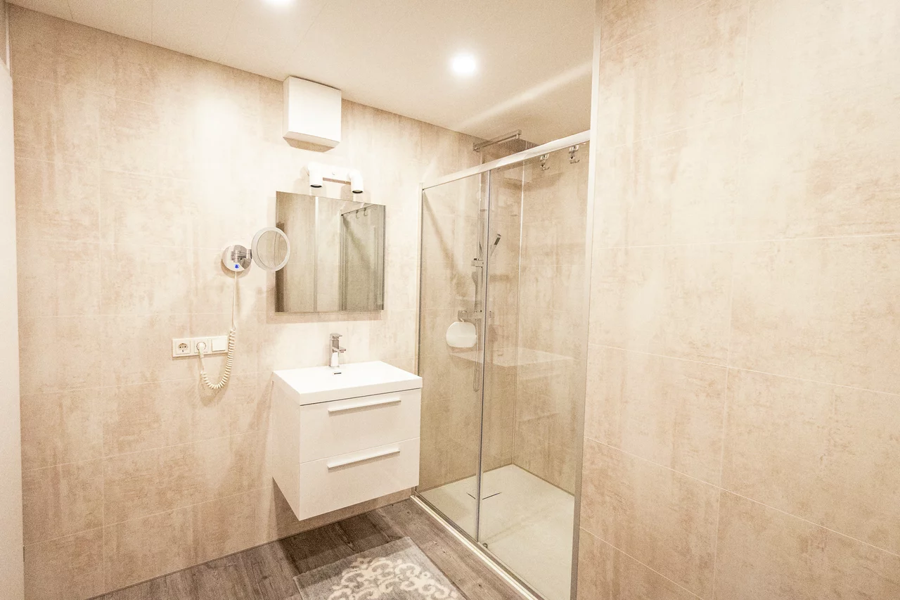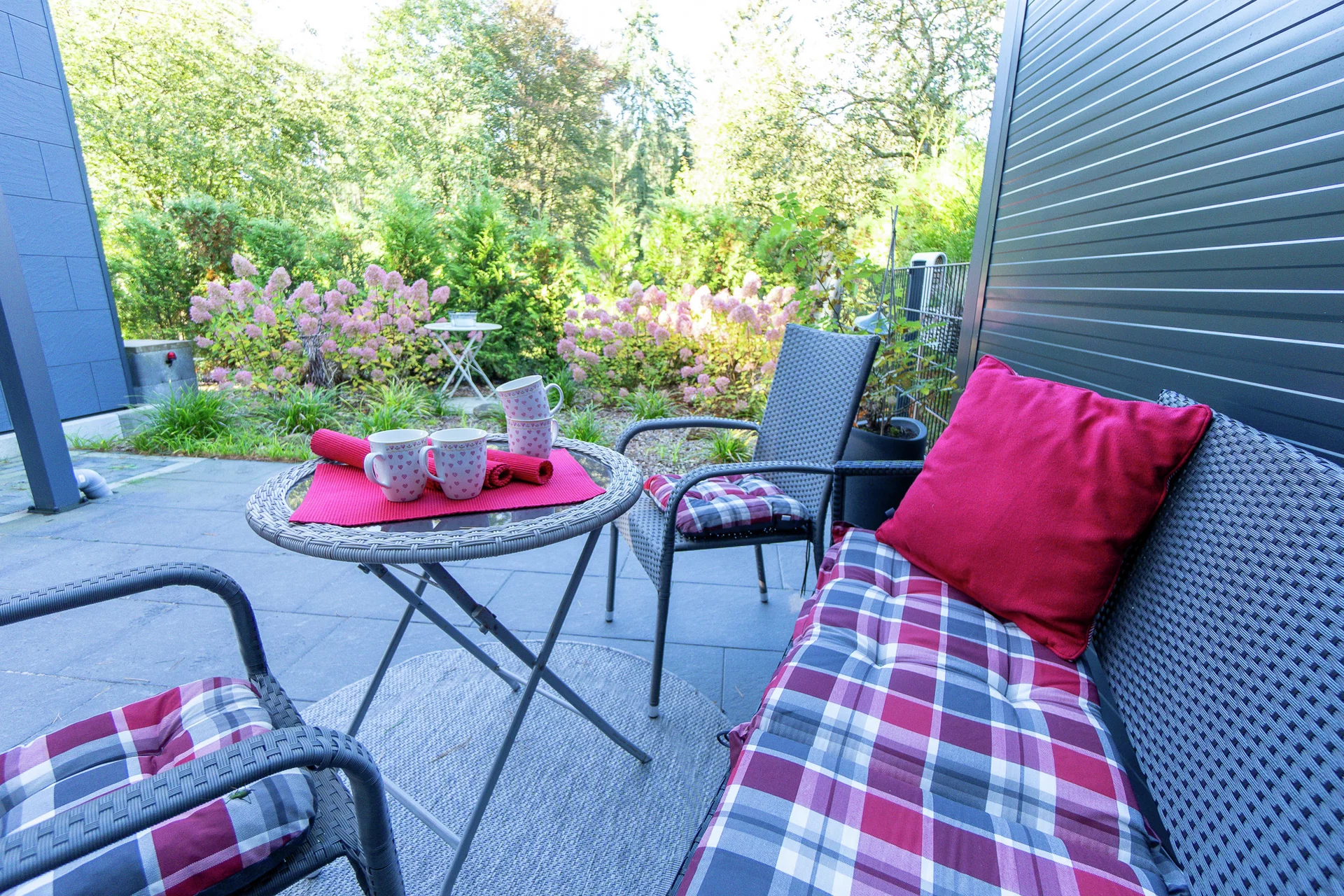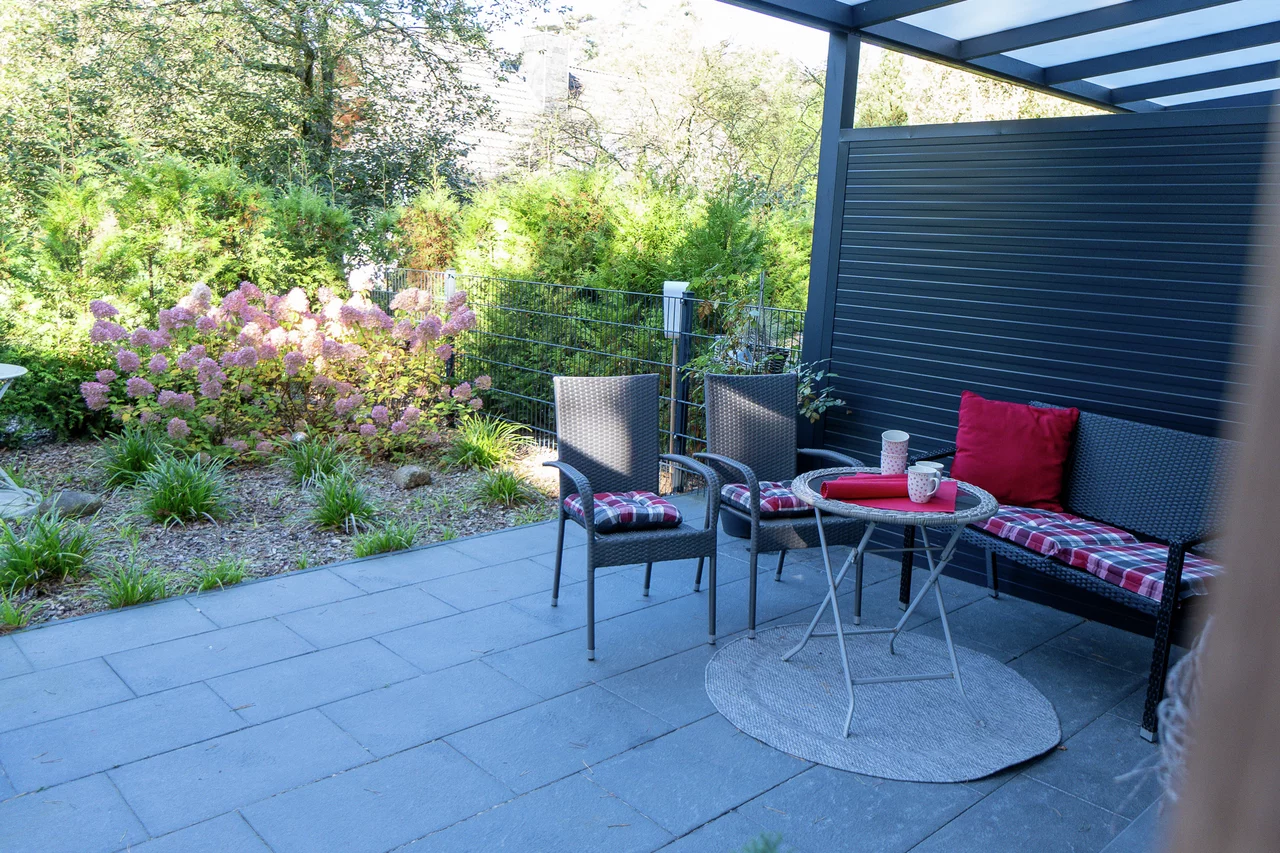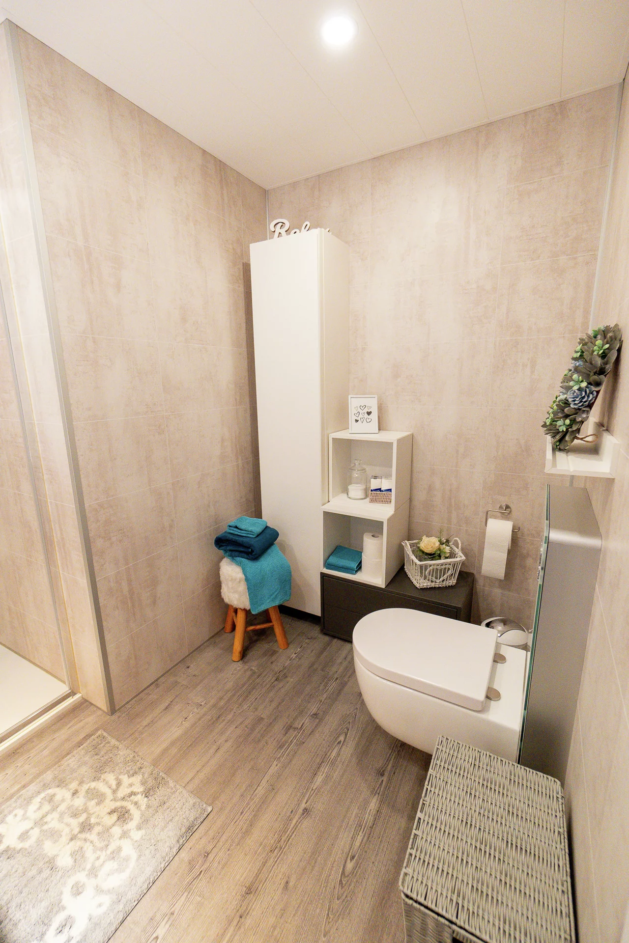 Ob großzügiger Wohnbereich, voll ausgestattete Küche oder das komfortable Schlafzimmer mit elektrischer Verdunkelung – in allen Räumen erwartet dich ein harmonisches Ambiente zum Wohlfühlen. Für angenehme Temperaturen sorgen moderne Klimaanlagen im Wohnzimmer und im Schlafzimmer.